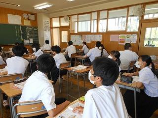 明日は1学期期末テスト。諸活動禁止も本日までです。授業ではテスト範囲のまとめをしたり、プリントで復習をしている時間をとりました。テストに合わせた提出物もあります。〆切に遅れないように、各クラスの教科係に提出しましょう。ご家庭でも確認をお願いいたします。