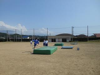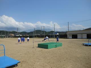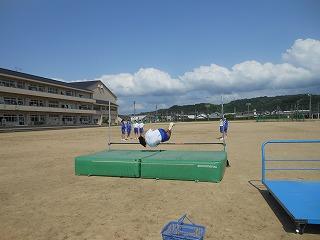 例年でしたら、そろそろ水泳の学習が始まるのですが、本校では生徒数が多いこと、更衣室の更衣の状況を考慮し、本年度も見合わせることとしました。水泳の安全指導については授業中に実施しますが、実技は陸上競技の時数を増やして対応することとします。どの学年も走り高跳び・走り幅跳びの学習を進めています。友達が記録を更新するたびに拍手が沸き起こる素敵な時間となっています。また、走り幅跳びの助走ゾーンは草が生い茂っていたため、校務員の塚田さんが時間をかけて刈ってくれました。生徒の学習活動を支えるため、裏方で務めてくださっている校務員さん方です。