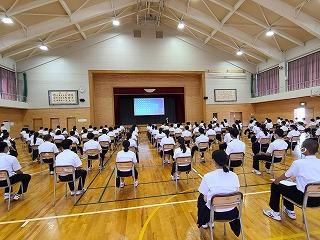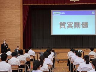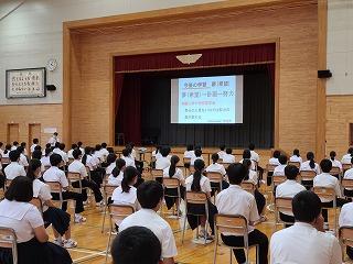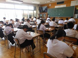 昨日午後、3年生を対象に、第1回進路説明会を実施しました。例年は保護者の皆様も対象とさせていただきましたが、今年度は生徒のみを対象としました。保護者の方には資料配付と後日お配りする「PTA研修部だより」でお知らせいたします。