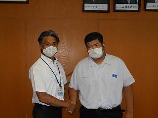 昨日の大会で2位となり、見事石川県代表選手となった高島一人くん。朝ホーム前に校長室を訪問し、昨日の大会結果と取組のようす、全国大会に向けての抱負を永井校長先生に伝えました。今後は県体、都道府県相撲選手権、北信越、全中と続きますが、体調をととのえ、自分の持てる力を発揮してください。おめでとうございます。