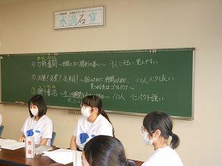 生徒会活動は会議室で生徒議会に臨んでいます。各委員会からの報告、執行部からの報告に続けて、津幡南中学校をさらに良くするにはをテーマに意見交換をしました。意見を交換するだけでなく、生徒会長からは、その意見を受けて、具体的に行動できることは何なのかを考えようとさらに積極的な呼びかけがされていました。