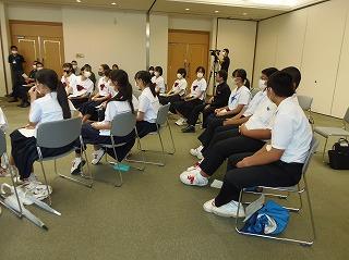 今日の放課後、来週に壮行会を迎える運動部の部長・副部長に対して、2年の先生方が激励の言葉を送る会が催されました。新チームになって1ヶ月近くが経ち、9月には新人大会で成果を披露します。各運動部の顔として悩みながらも成長を期待するメンバーに学年主任の吉田先生を始め多くの先生方から温かい言葉がかけられました。