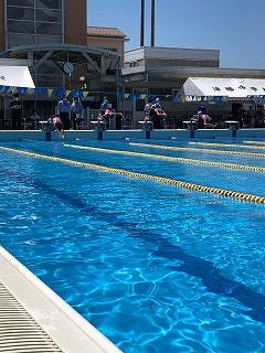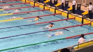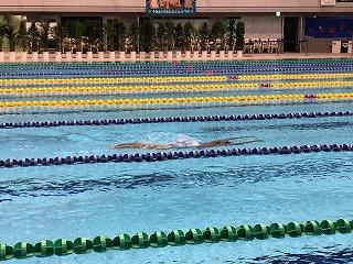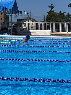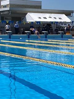 今日は河北郡市新人体育大会のトップを切って、水泳競技大会が津幡中学校プールで開催されました。本校からは3人の選手が出場しました。