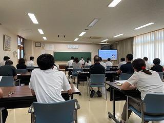 3年生も学年集会を行い、新型コロナ感染拡大第5波を受けて映像資料から学んでいました。制限された状態ではありますが、最上級生として自覚を持った生活を組み立ててほしいと思います。