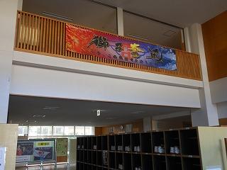 令和3年度運動会、1ヶ月前になりました。生徒玄関の上には、今年度のスローガン『獅子奮迅~今この瞬間を全力で挑め~』が掲示されました。