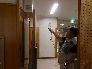 写真は3年2組です。この後、ワックスをかけ、抗菌ガスを噴霧します。