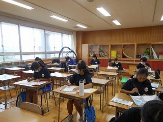 今日は全校登校日。きれいになった校舎に生徒たちの元気な声が戻ってきました。お弁当や夏休みの課題、内履きを持って生徒たちは登校。午前中3時間、午後2時間の実力テストに臨みました。
