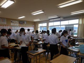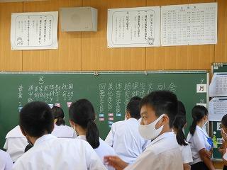 運動会を先週末に終えて、今日から制服登校に戻りました。朝清掃からスタートし、金曜日課の午前3時間・午後3時間の変則時間帯でしたが、午後の2時間は来週から始まる後期の学級役員や係決めを行いました。
