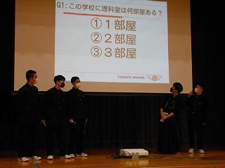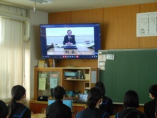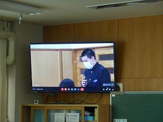 いよいよ午後の本番。中条小学校・条南小学校・井上小学校の6年1組・2組とリモート接続で説明会を行いました。