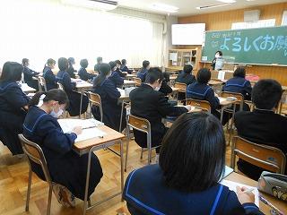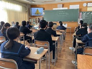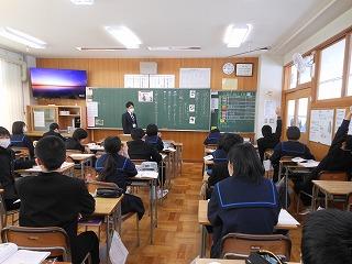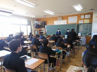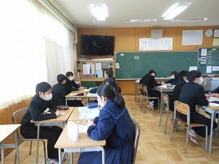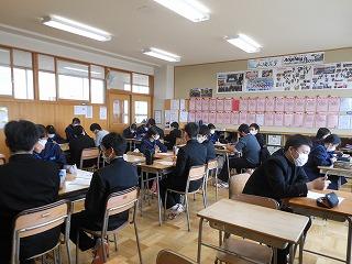 私立入試を今週終えた3年生は、今日の5限目に後期生徒総会に向けての学級会を行いました。あと1ヶ月余りで卒業する3年生、生徒総会でも最高学年としての立派な意見を期待しています。