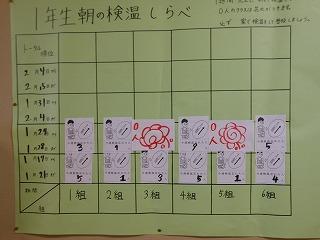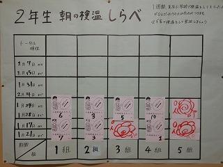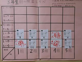 保健委員会では今月の取組として、朝の家庭での検温を徹底する取組を進めています。検温を忘れてしまった生徒は学校で検温をしますが、現在の状況を考えて、登校前の検温を徹底しましょう。月末には全クラスが花丸にしたいですね。