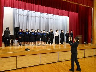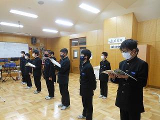 2年2組の櫻井章翔くんの伴奏で前後期プロ委20人で斉唱しました。