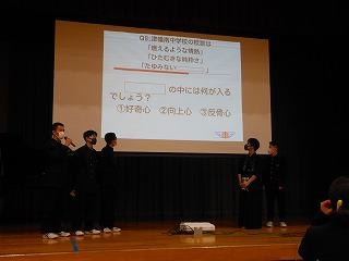 ▽立志式後には3年生から、立志を迎えた2年生にメッセージがありました。