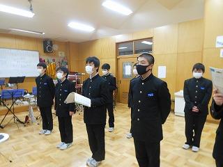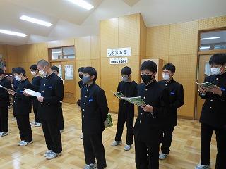 3年生は全校集会後の2・3限に最後の面接練習や問題演習に取り組み、4・5限と卒業式練習を行っています。いよいよ証書授与のリハーサルです。呼名に対する大きな返事も聞こえています。