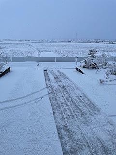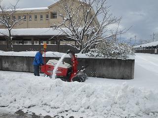 今日も思わぬ雪のスタート。生徒の皆さんの登校に合わせて、今日も茶谷先生が南中条西の交差点から学校までの歩道、駐車場内の歩道の部分を除雪機で除雪。今ほど、職員室に戻ってきました。