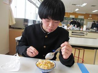 3月1日から臨時休校のため、家庭の調理実習も授業を入れ替えて実施しています。生徒の表情もいきいきしています。