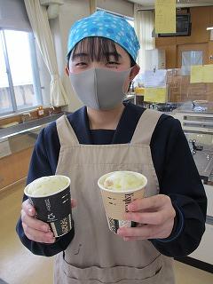 今月は冬休みの2年生家庭科課題であった「汁物メニューコンクール」最優秀賞の献立が出されます。今日はB部門(中華部門)の最優秀賞、2年4組兵部こはるさんの「ヘルシーでおいしい!坦々春雨スープ」でした。アピールポイントは低カロリーなのに、食べ応えがあるところ、中華料理の献立にぴったりだと思います!