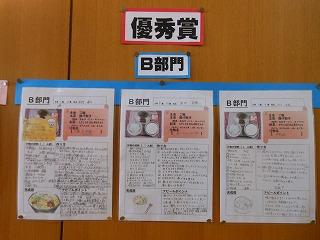 昨日の給食にも出された献立コンクールの優秀作品。家庭室前にはメニューカードとともに、優秀者の表彰コーナーが設けられました。