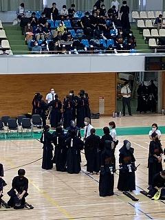 今日は加賀地区大会5日目、女子剣道部が団体戦決勝トーナメントに向かいました。