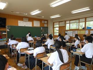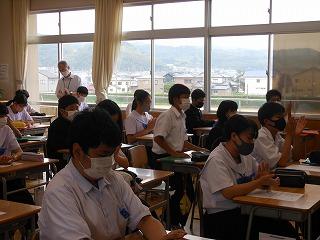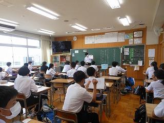 1学期の期末テストは29日に行います。先週末の大会の疲れも徐々にとれ、期末テスト前の授業にも力が入ってきました。英語ではペアワークで理解を深め、国語では鑑賞文の書き方を学習していました。