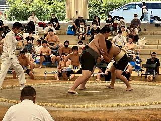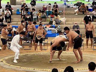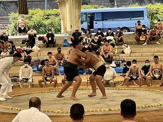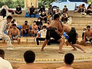 相撲部は北信越大会から一度津幡に戻り、2日間調整して、昨日会場入り、今日の大会を迎えました。この夏の思い出となる木曽町民相撲場でした。