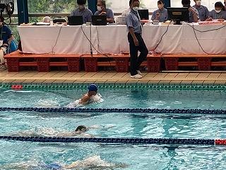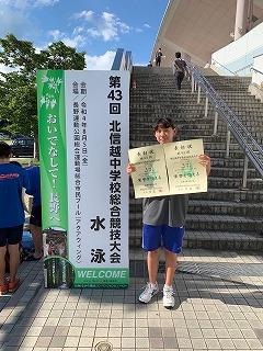 昨日、河北郡市中学校新人体育大会の先陣を切って、水泳競技が津幡中学校プールで開催されました。本校からも2名の選手が出場しました。