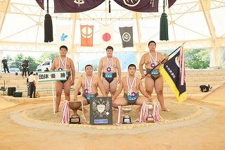 先日北信越大会で8年ぶり2回目の優勝を果たした相撲部は、同じく長野県木曽町で開催された第44回中部日本選抜中学生相撲大会に臨み、見事優勝しました。