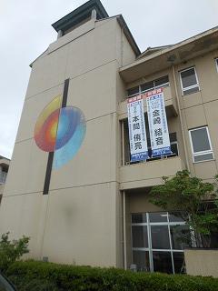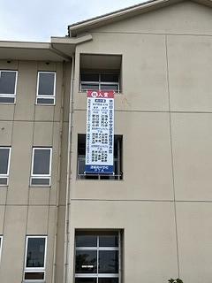 今年度は美術部の皆さんが運動会のスローガンを制作中です。仮の段階で一度遠くから見てみようと、3Fに掲示し、部員みんなで見合っていました。この後、さらに修正し、完成を目指します。ありがとうございます。