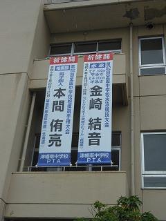 本校正面の懸垂幕が変わりました。相撲部の北信越・中部日本・全中の「祝入賞」と吹奏楽部の全日本吹奏楽コンクール「祈健闘」の2枚です。吹奏楽部は10月22日(土)に名古屋国際会議場で開催される第70回全日本吹奏楽コンクールに北陸代表として出場します。出演順も決まりました。午前の部15校のうち14番目の登場です。21日(金曜日)に出発し、調整を経て、コンクールに挑みます。