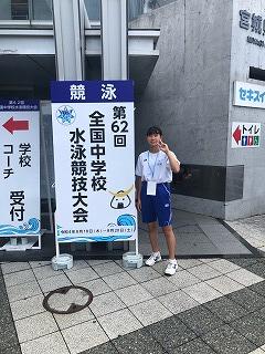 全国中学校体育大会水泳競技 金崎 結音さんが100m平泳ぎに出場しました。