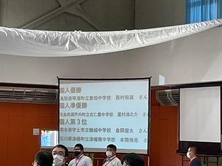 河北郡市と白山市、野々市市の中学校から15人の代表が集まり、本校からは3年4組 飛田 賢人さんが代表として出場しました。