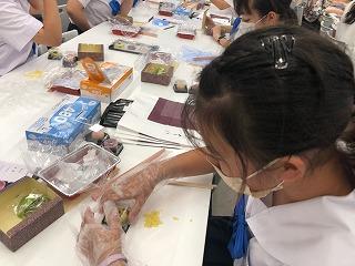 昨日は金沢市の石川県観光物産館で和菓子作りを体験しました。今まで使ったことのない道具も使いながら、一人ひとり創意工夫のみられる和菓子ができあがりました。部員で電車・バスに乗っての校外活動、楽しかったですね。