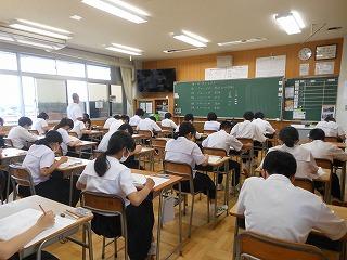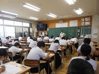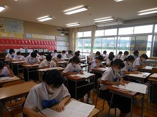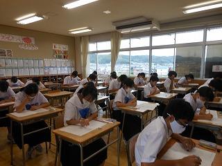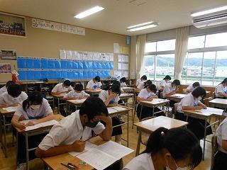 今日は全学年登校日で実力テストを行いました。久しぶりに教室で顔を合わせ、夏休みの課題を提出した後、朝清掃に取り組み、午前中3時間・午後2時間のテストに臨みました。2学期はちょうど1週間後の9月1日に始まります。