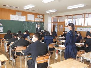 先週金曜日の午後に、第2回進路説明会を行いました。いよいよ卒業後の進路に向けて、手続きも本格化します。お子様の進路実現に向けて、保護者の皆様にお願いすることも多くなりますので、配付資料や進路通信を確認の上、よろしくお願いします。明日には、第3回進路希望調査と住所確認書、第2回河北郡市統一テストの成績通知票を配付します。