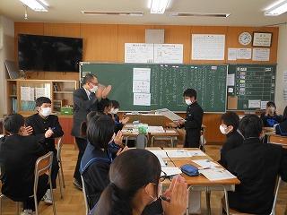 表彰式当日欠席した生徒には、後日、本校で表彰式を実施いただきました。吉田克也津幡町教育長様にも同席いただきました。