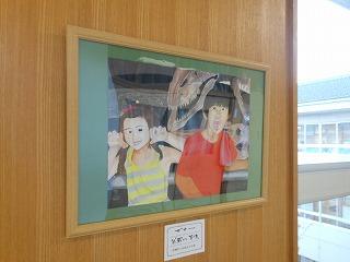 今日から3年生の作品展が図書室前の廊下で始まりました。3年生のテーマは「人物画」。中には部活動の仲間と過ごした夏を取り上げた絵画もありました。