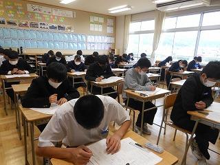 今日の6限目は3年生のみ技術・家庭のテストを行いました。明日は全学年で5教科のテストです。