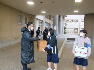 昨日の放課後4時30分から、町内の商業施設「PLANT-3」津幡店前で本校生徒会の5名が赤い羽根共同募金活動を行いました。夕方買い物に訪れた多くの皆様から募金をいただきました。ご寄付いただき、ありがとうございました。