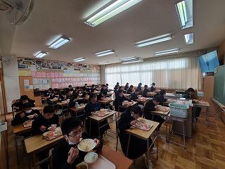 今日の給食は韓国料理。メニューに合わせて、給食委員会のお知らせと文化委員会のお知らせがありました。文化委員会では年中行事や給食のメニューに関連させて、行事の意味や各国の食文化について放送をしています。
