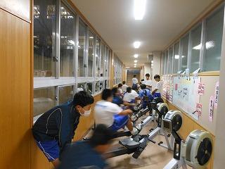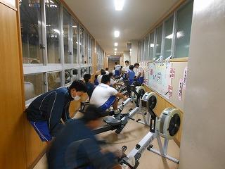 ボート部は今年度の屋外での大会が終了し、冬場は体力強化にあたっています。活動もローイングマシンでタイムを計りながら、目標距離をいかに短時間で達成できるか部員で競っています。今月は小松市で、来月は本校体育館でインドアローイング大会が開かれます。1月の県大会を突破し、全国大会への出場権をつかみたいですね。