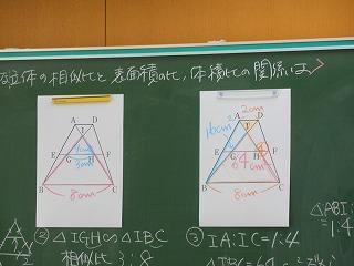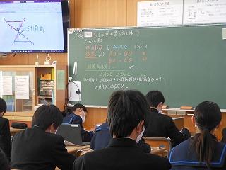 2学期の授業も今日を入れて8日間。終業式の23日は授業がないため、どの教科も今学習している単元のまとめ・ゴールに向けて、学びを深めています。数学は図形分野に入り、対頂角や平行、合同などの数学用語や証明の問題に頭を悩ましながら挑んでいます。