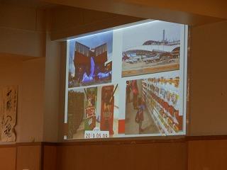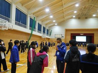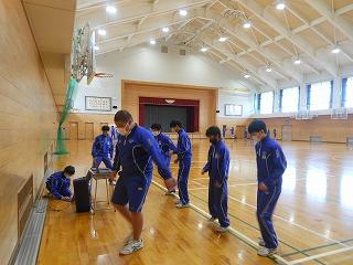 30分の訪問の予定を大幅に上回り、部員たちは卒業式の準備がされたまま被害にあった体育館の様子などを見学してきました。