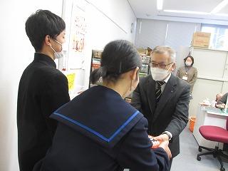 22日(木)放課後に生徒会会計の大岩黎空くんが赤い羽根共同募金の校外募金会場であったPLANT-3様に活動のお礼と活動結果の報告に伺いました。買い物に来られていた地域の皆様の温かい気持ちにふれて、貴重な体験をさせていただいた生徒会執行部です。