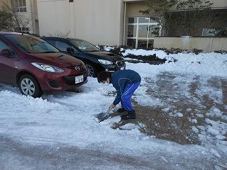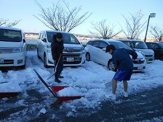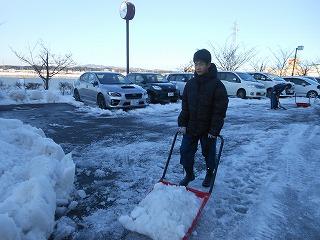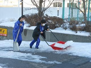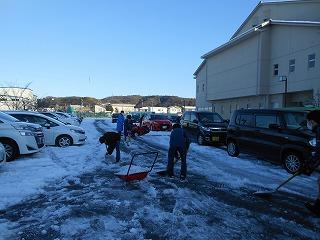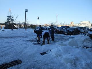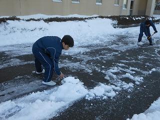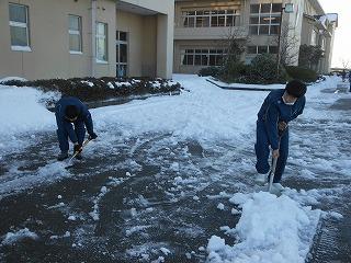 昨日の放課後、部活動の時間にボート部はトレーニングを兼ねて除雪活動に取り組んでくれました。本校の正面玄関は北向きで融雪が進まないため、今日の働く人に学ぶ会の講師駐車場を整備するため、頑張ってくれました。
