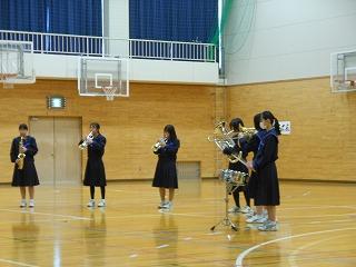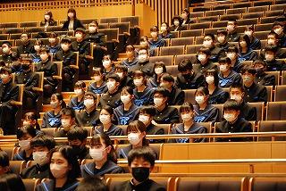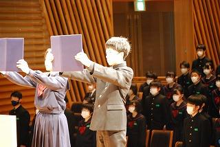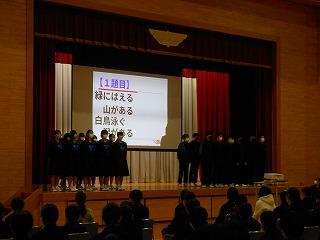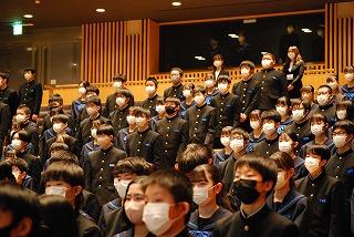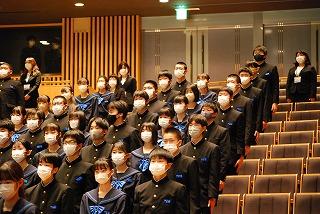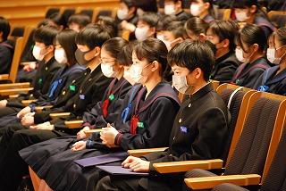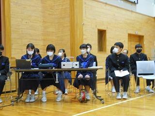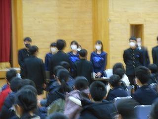 まずは表彰披露です。吹奏楽部の新人戦やボート部のインドアローイング大会、津幡町英語スピーチコンテスト、人権作文などの表彰生徒がステージに上がりました。