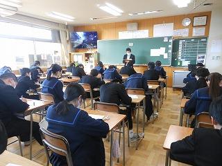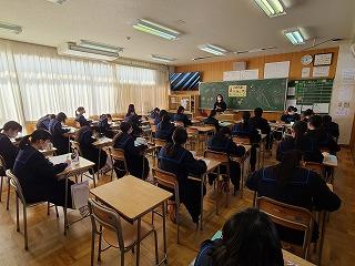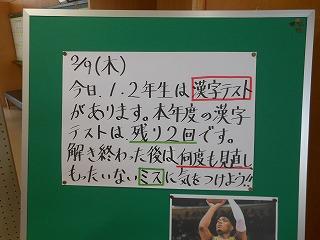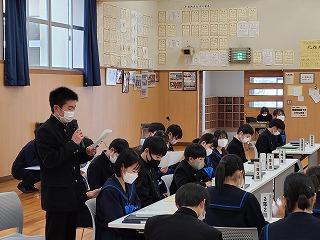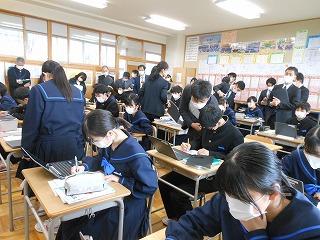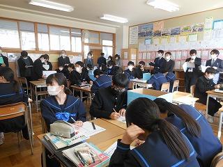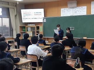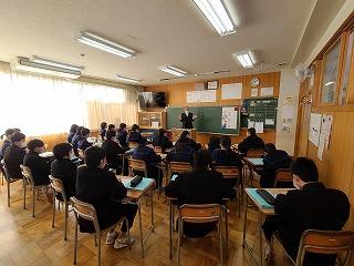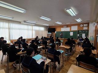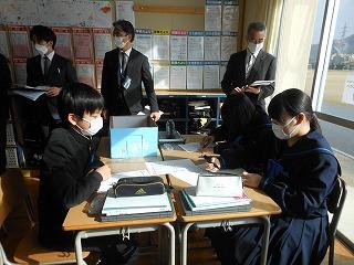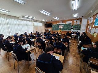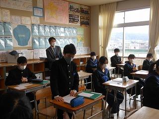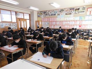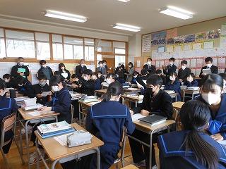 先週は立志式や働く人に学ぶ会、私立高校一般入試、公立高校推薦入試と節目となる行事が多い1週間でしたが、今週は通常の時間割通りの落ち着いた1週間です。ただし、3年生は卒業証書授与式まで1ヶ月あまりとなり、金曜日には3学期期末テストを迎えます。