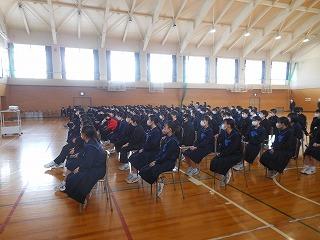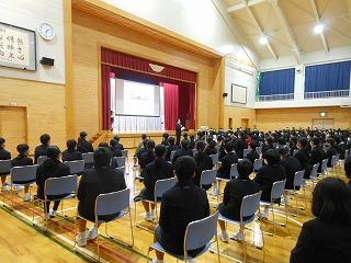 今日は木曜日でしたが、水曜時間割で授業を行い、6限目に全校集会を行いました。