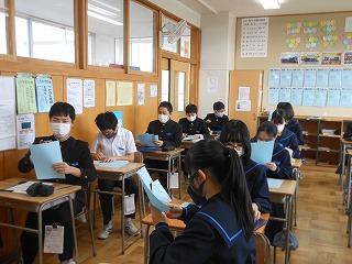 来週テストが返されたら、しっかりと見直し、来年度からの学習に活かしてもらいたいと思います。