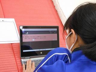 2年生では今日の午後、学年一斉で英語の調査を行いました。英語の「話すこと」調査です。Chromebookで出題される問題に各自が英語が解答しました。(調査はクラスを半分に分け、実施しました。)