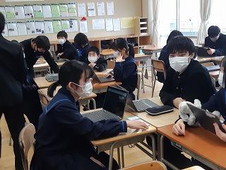 1年生は今日の午後、総合的な学習の時間に各自が調べた「職業調べ」学習の発表会を行いました。自分が興味をもった職業について、Googleスライドを作成し、学級の生徒の前で発表しました。本校のカリキュラム・マネジメントの柱は表現力の育成です。教科で培った力を総合的な学習の時間でも発揮しています。
